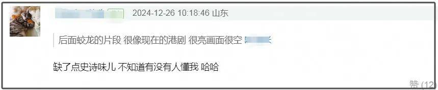 综合网友讨论,大伙吐槽的主要有两点,其一是《蛟龙行动》画面质感都不如《红海行动1》。《蛟龙行动》讲述的是海战,正义之士对抗恐怖组织,镜头画面呈现多以海战武器及海底画面为主,视觉效果不如《红海行动1》陆战场面激烈。