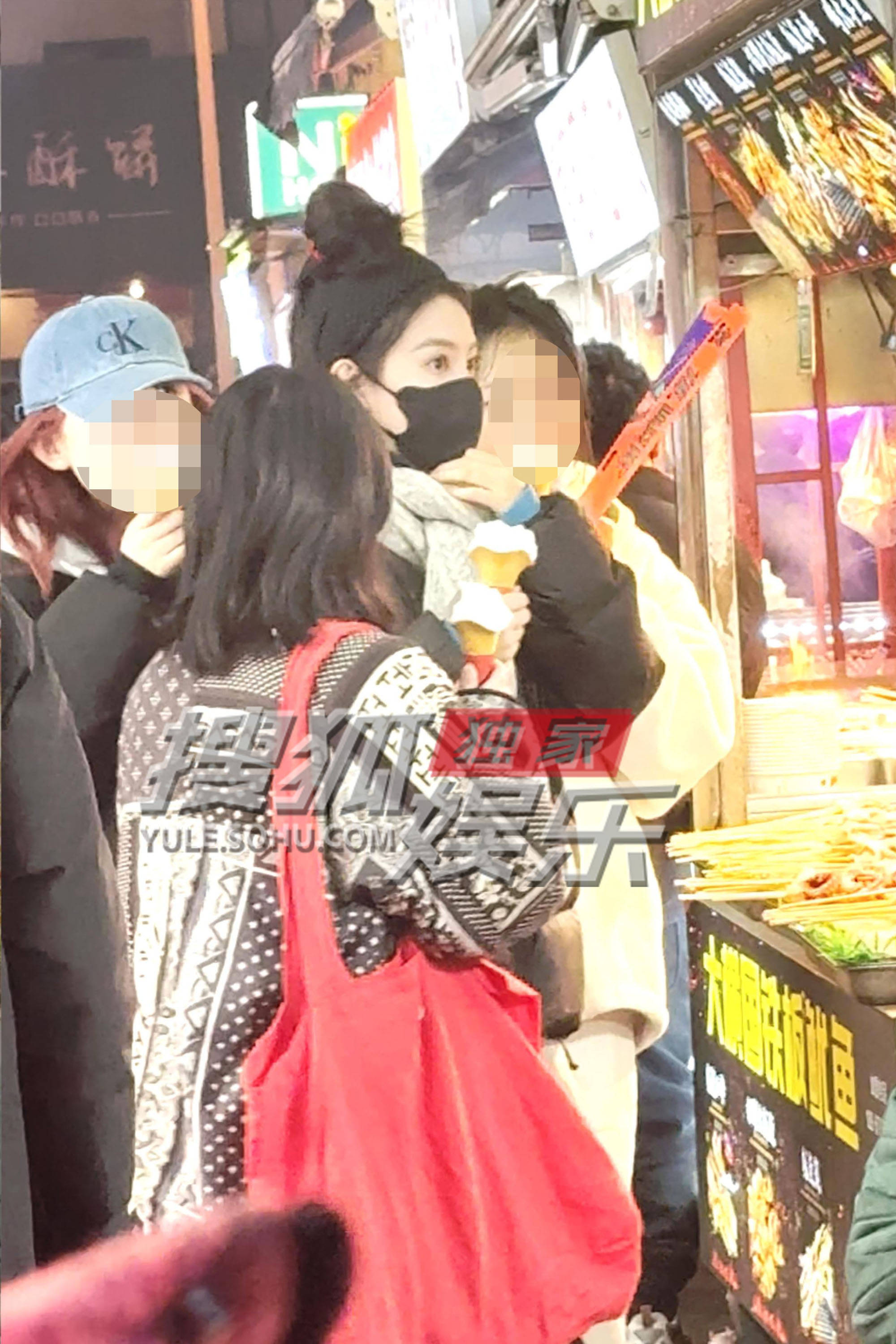 章若楠吃着冰淇淋去逛夜市。