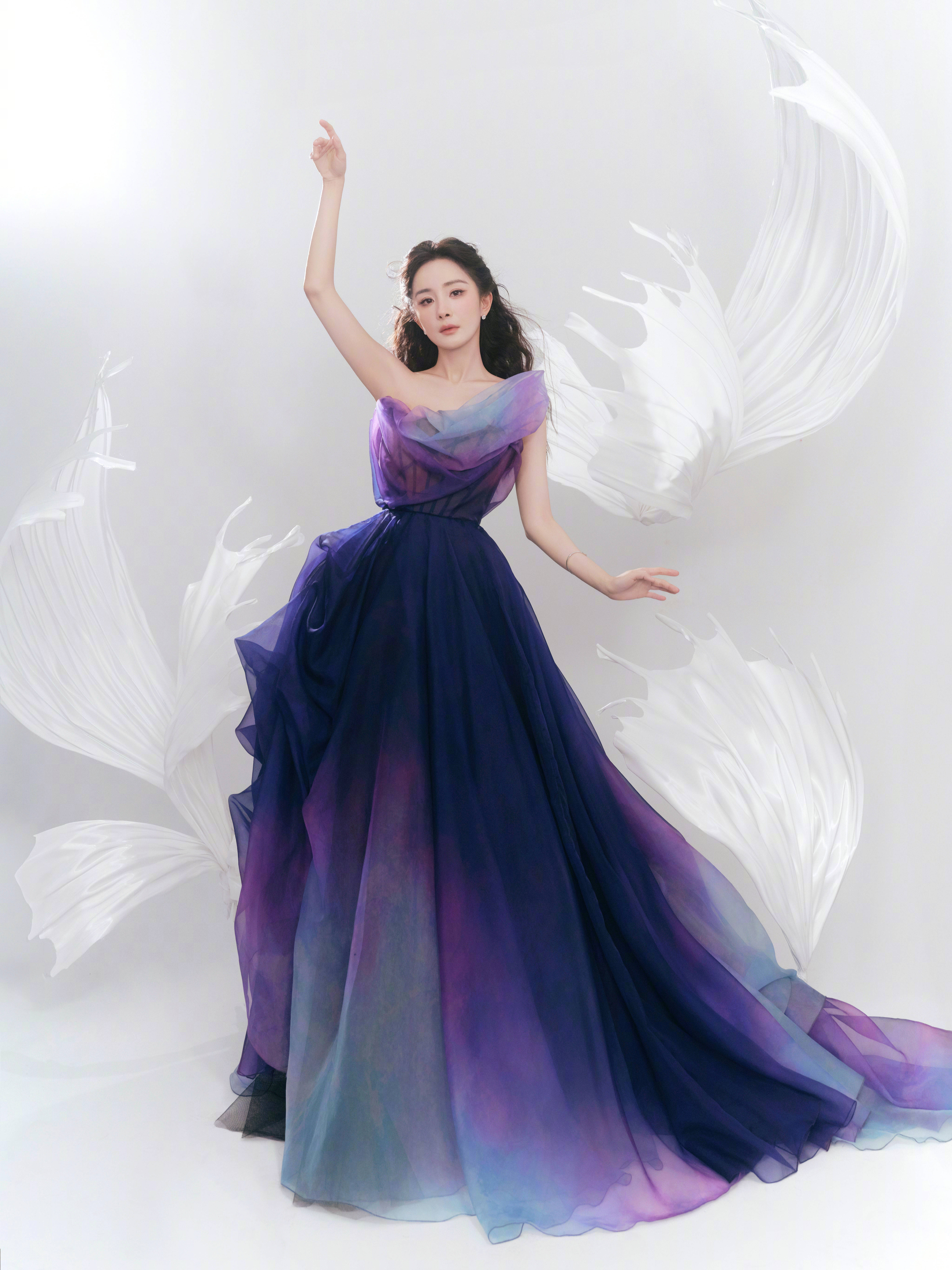 搜狐娱乐讯 12月26日,杨幂工作室公开一组杨幂的活动随拍。照片里杨幂穿紫色渐变纱裙,身材曼妙,公主头造型娇艳欲滴。