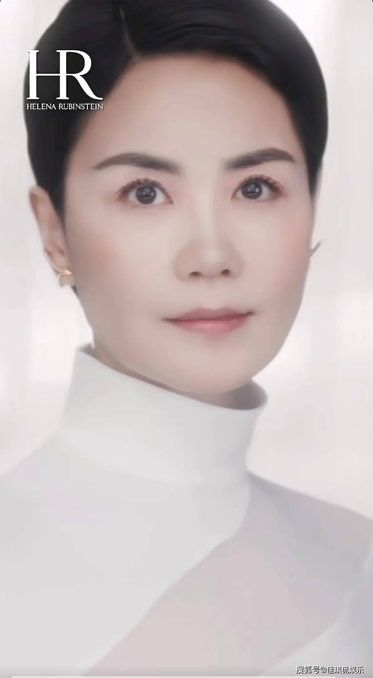 广告片是经过美颜滤镜的,拼命修图,王菲虽然年龄大了,但脸上状态显年轻。