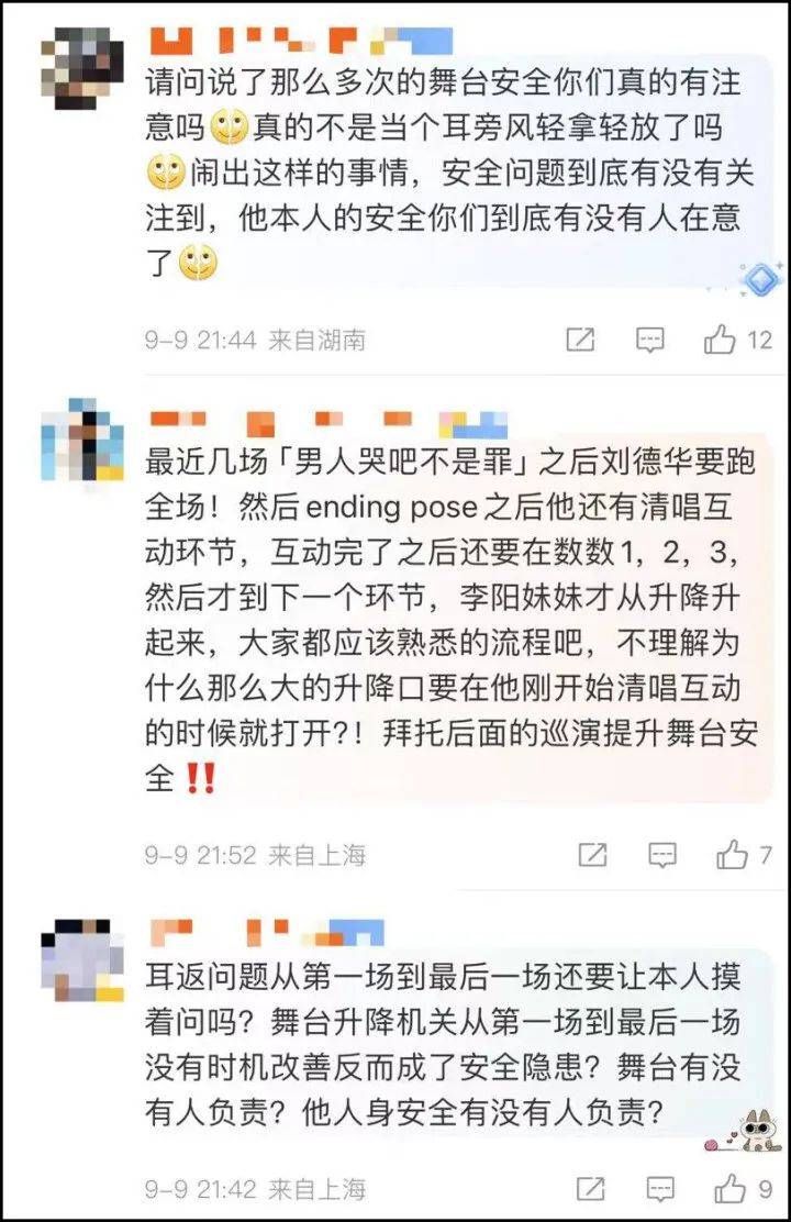 演唱会后不少歌迷在演唱会官方微博下留言提出质疑:
