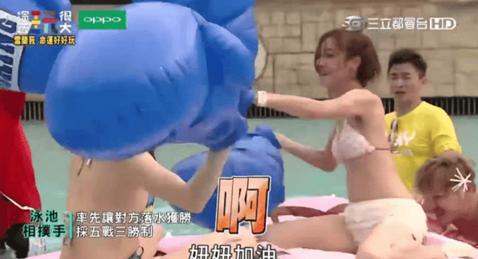 在这期的节目中,采用的是分组式的赛制,每一组都派出一位选手参战,不得不说,这些女嘉宾的身材真的很完美,颜值也特别的高,比起来一些综艺而言质量是没得说,也怪不得这部综艺的收视率和人气一直都是居高不下。女嘉宾手戴两只大拳套,在不被打下水的情况下把对方弄下水。