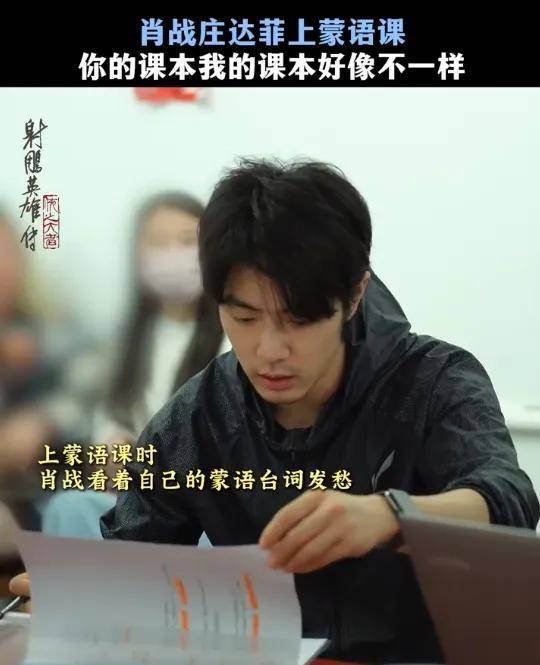 最新预告中有肖战饰演的郭靖说蒙语的画面,从片方放出的幕后花絮来看,肖战和庄达菲的蒙语都是提前跟着老师系统学习过的,不同的是庄达菲的词只有几句,而肖战的蒙语台词有好几页纸,光看就已经很头大了。