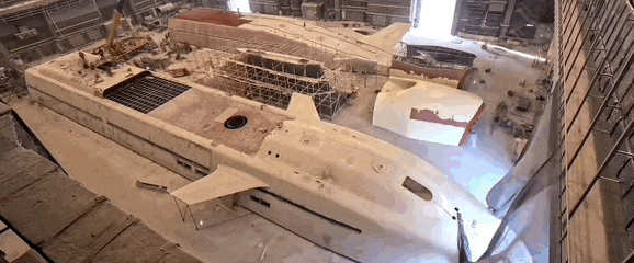 更令人惊叹的是,这座庞然大物不仅只有外型,潜艇置景内部的机械结构、指挥舱内的仪表盘、武器系统的操作流程,都经过了详尽的研究和设计。鱼雷舱、指挥舱、导弹舱、核反应堆舱等9大舱室也得到了还原。