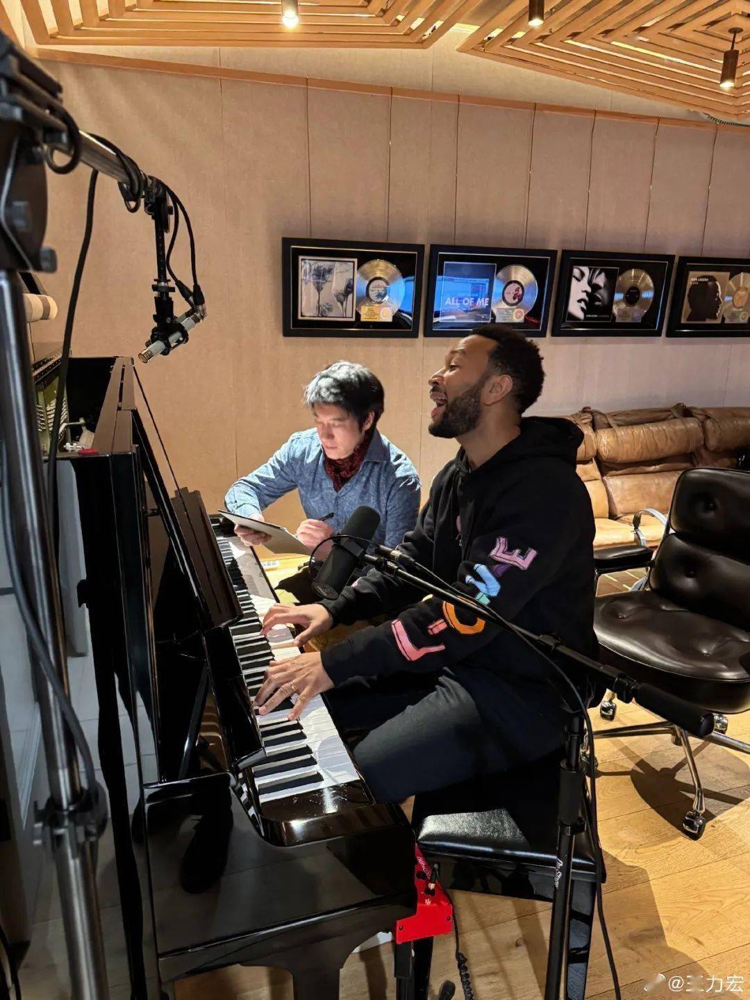 王力宏晒出和JohnLegend的合影,并表示两人合作了新歌!