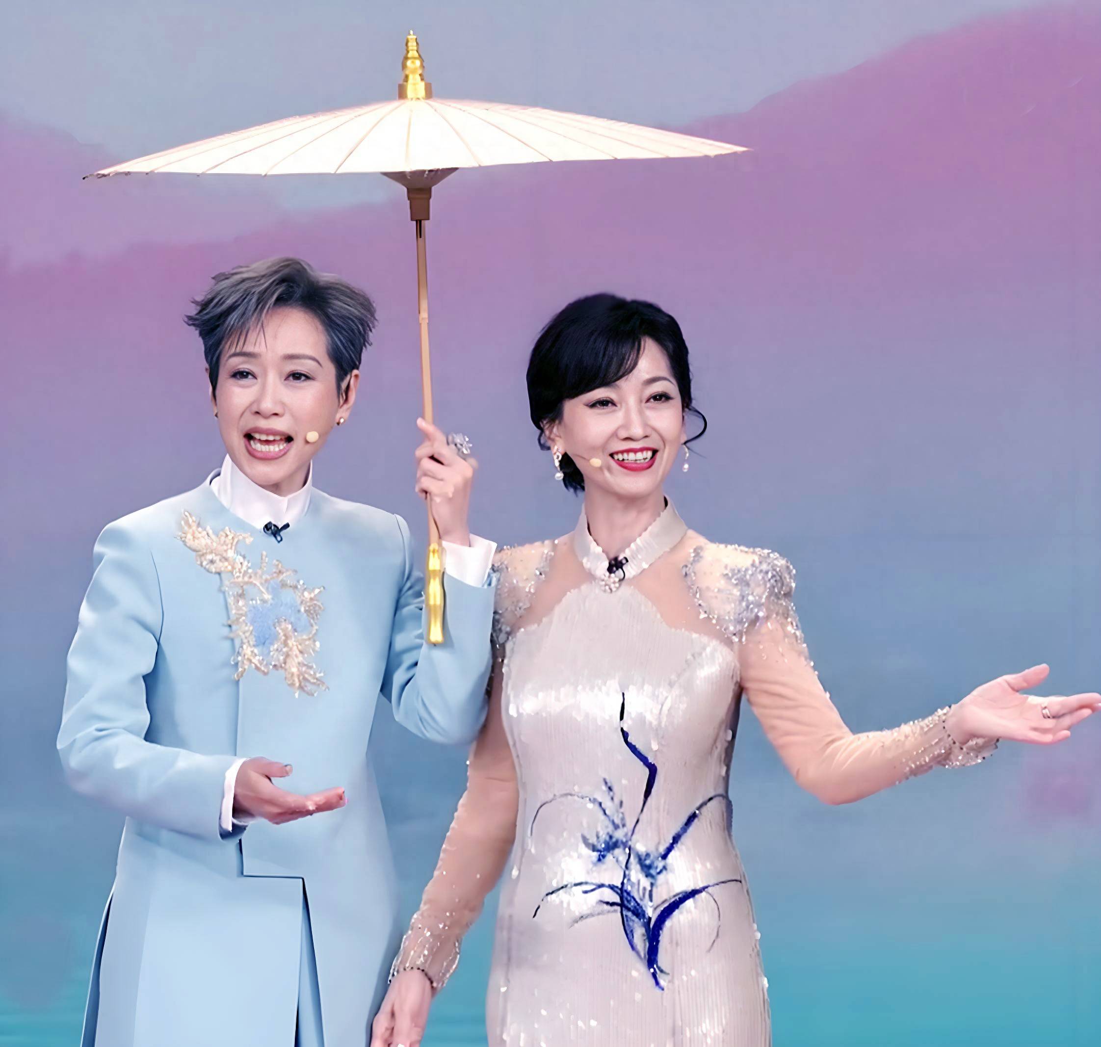 (赵雅芝与叶童在春晚表演小品《借伞》)