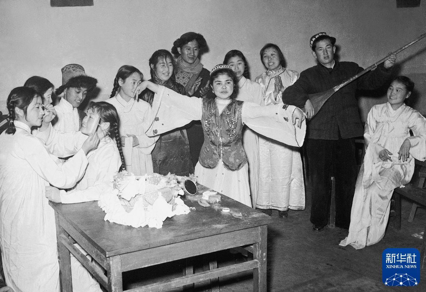 1961年春节前夕,中央民族学院(现中央民族大学)学生准备参加学校举办的联欢晚会。新华社记者 顾松年 摄