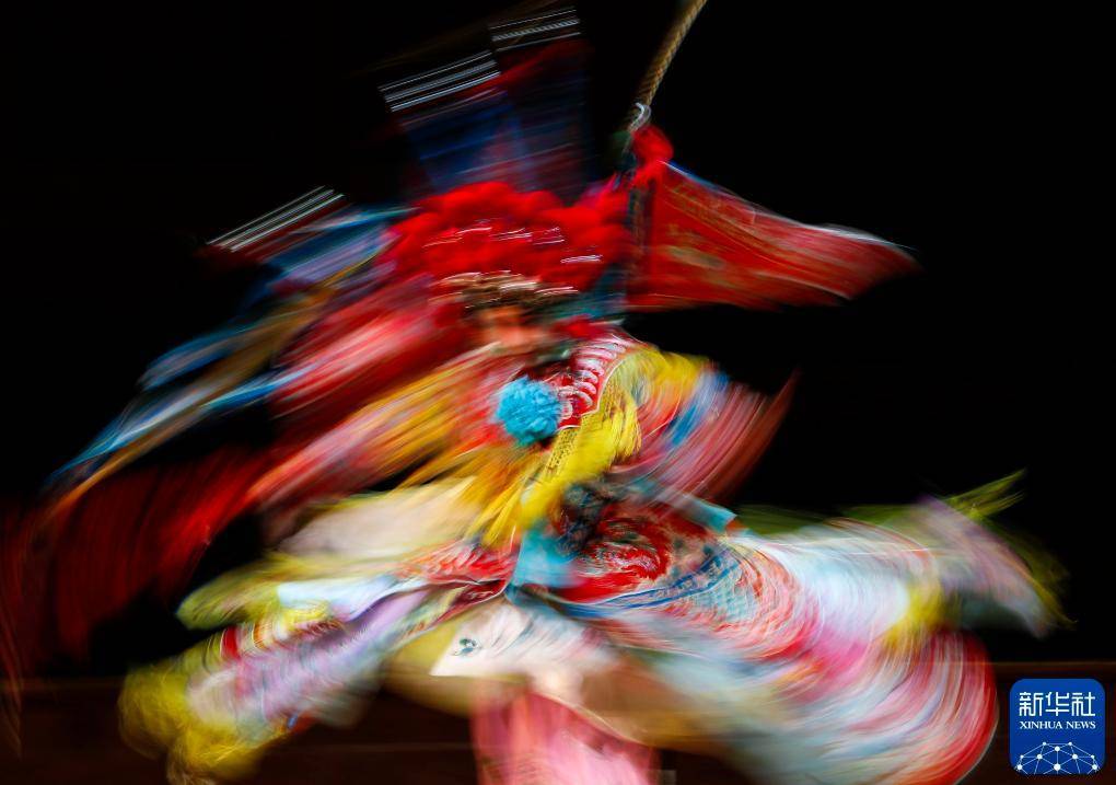2020年1月23日,在英国伦敦威斯敏斯特中央大厅,中央戏剧学院教师杨琦表演《巾帼出征》。当日,“峥嵘七十载,英华学子情——2020年全英中国留学生春节联欢晚会”在伦敦威斯敏斯特中心大厅举行。新华社记者 韩岩 摄