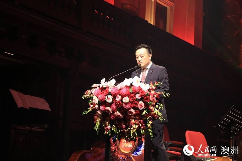 澳中春晚总导演、澳中文化友好协会主席兼澳大利亚澳视传媒总裁索江致辞(摄影 王泉骄)