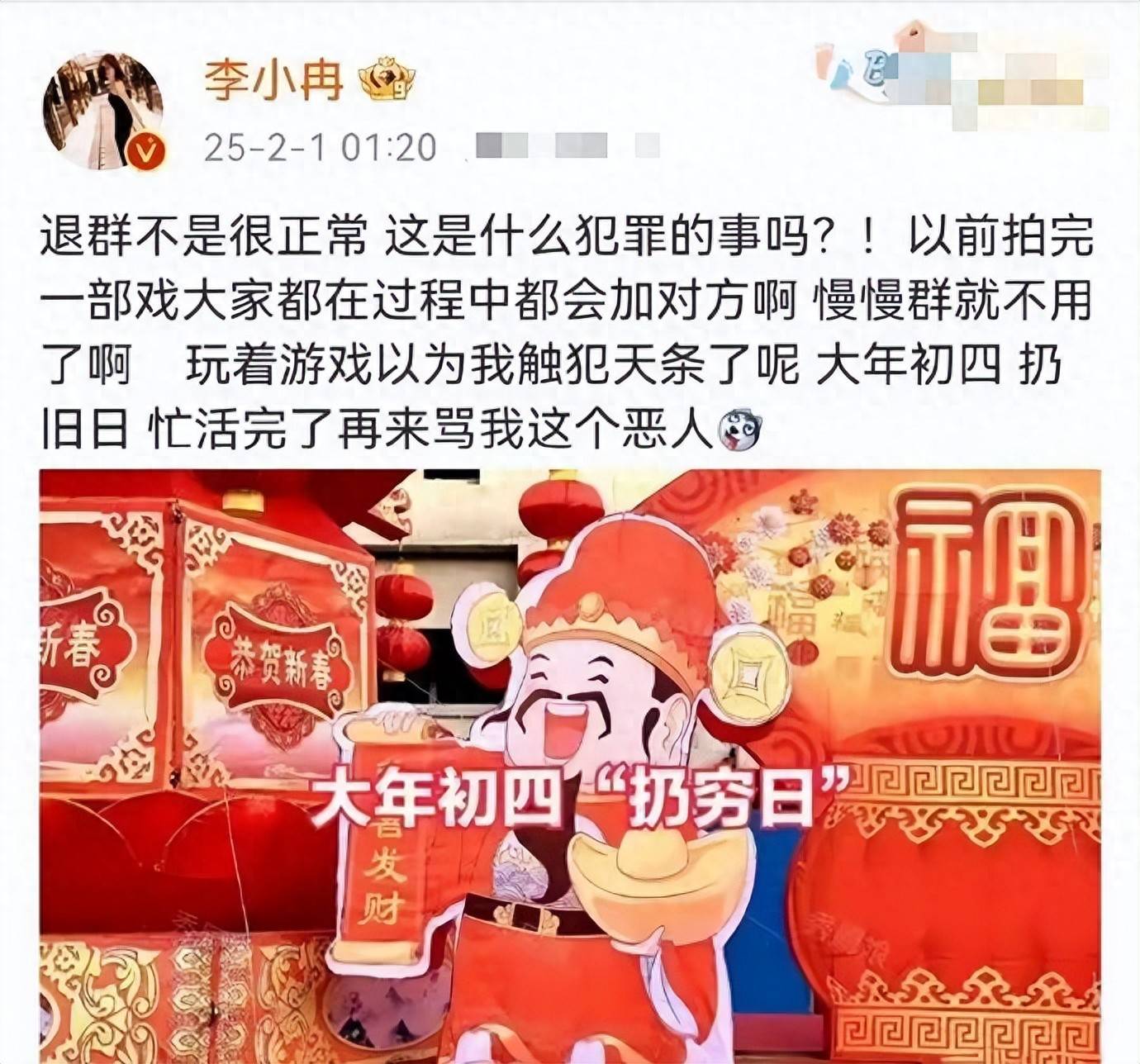 2月1日,李小冉凌晨作出了回应,直呼退群是很正常的事情,自己又没有“犯规”,话里话外吐槽网友太“闲”。