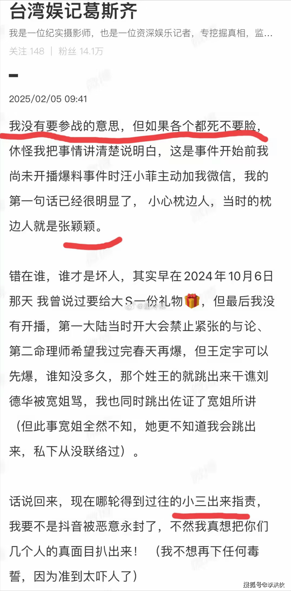 2月5日,面对张颖颖的发声,台湾娱记葛斯齐忍不住开大了,而他的回应更是成为了网友嘲讽张颖颖的呈堂证供。