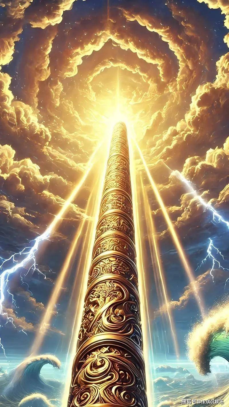 十万龙族举起的金箍棒,是悟空可变大变小的玩具和武器,哪吒用尽了全身力气,也不能让金箍棒有微微颤动。