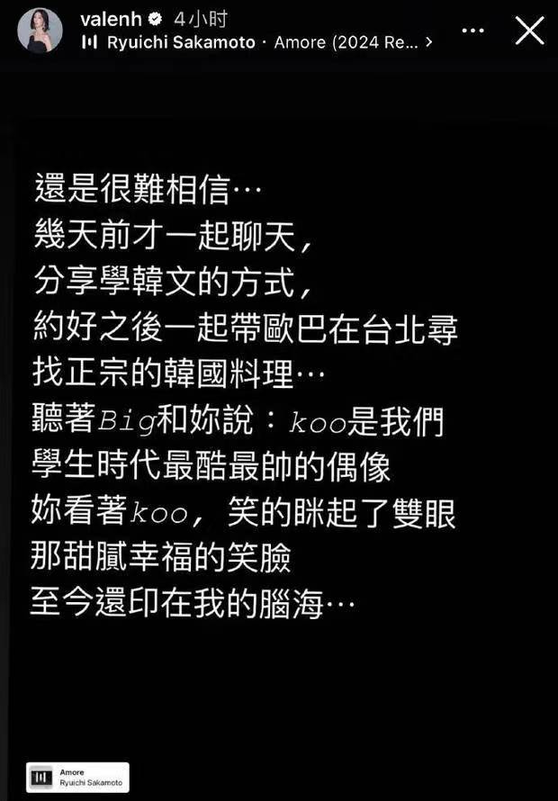 许茹芸发文悼念大S,表示两人感情很好,谈到具俊晔,大S满眼都是星星,两人很甜蜜和幸福,感情并没有任何问题。