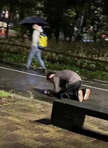 搜狐娱乐讯 2月6日,有网友晒出了一张疑似汪小菲在台北淋雨的照片,照片似乎拍摄于汪小菲抵达台北的当天,照片中一个衣着和发型很像汪小菲的男子在雨中长跪不起,对于旁边路人的眼光毫不在意,其状态令不少网友感到担忧。