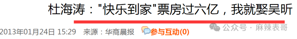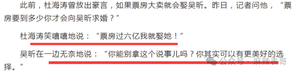 杜海涛放话:票房过六亿,我就娶吴昕。