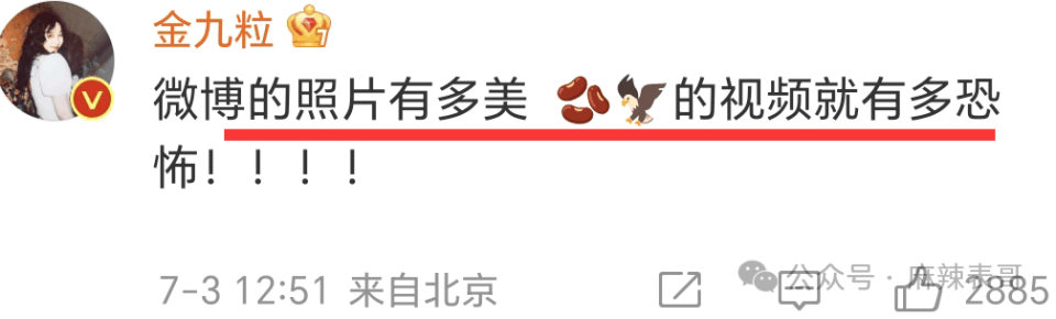 当时金婧在微博回复:微博的照片有多美,某音的视频就有多恐怖。