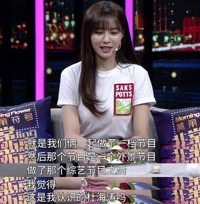 当时两人一块做一档外景的节目,拍摄完以后,她发现杜海涛和《快乐大本营》里的“傻呆萌”形象一点都不符。