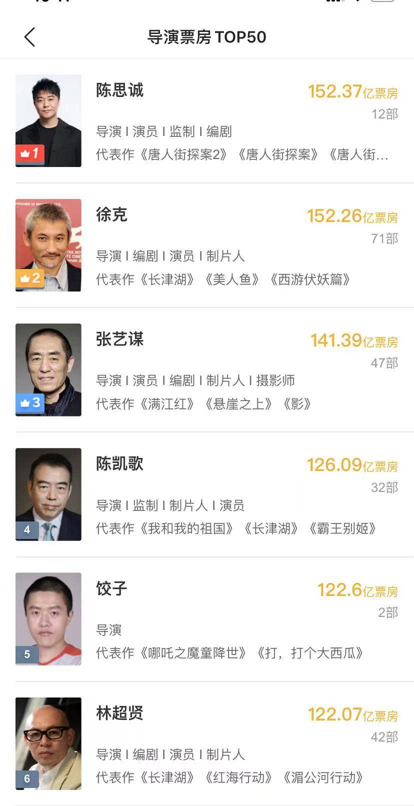 陈思诚导演的“唐探”系列电影票房也高达114.43亿元,不过这个成绩可能会很快被饺子超越,饺子目前导演的“哪吒”系列票房高达125亿票房。