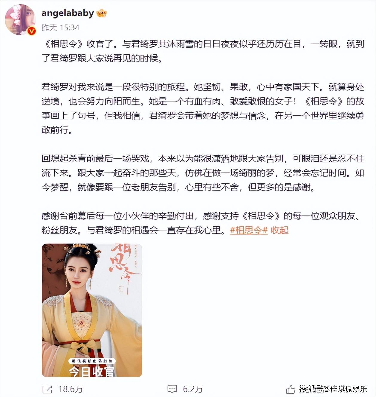 8日,杨颖发文感慨此剧将要收官。