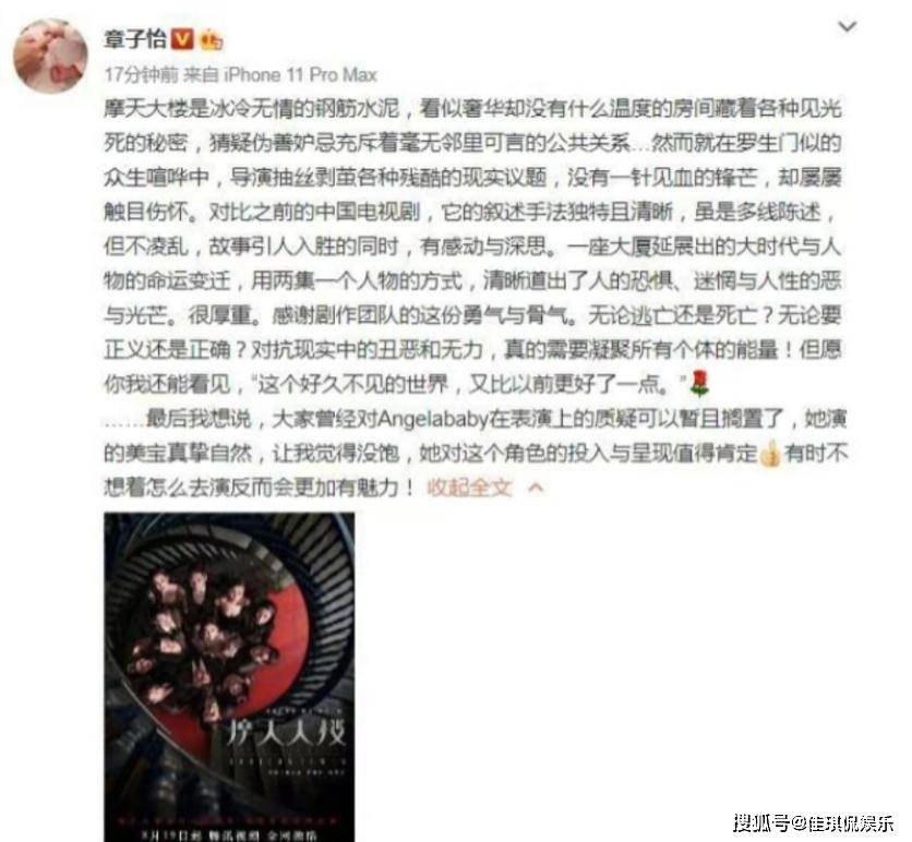 当时,章子怡更是亲自发长文来夸奖其在《摩天大楼》里的演技。