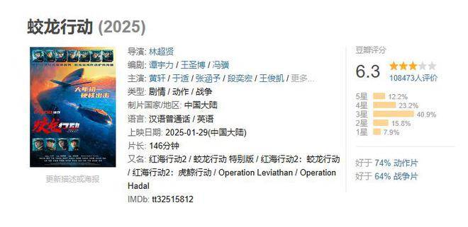 其次就是影片宣传,今年《蛟龙行动》的宣传有点迷,一会儿宣传影片机密性很强,一会儿又发剧情片段,宣传女性力量,影片里蒋璐霞却直接杀青。再加上本身宣传的面就不广,一上来就没有占的太多先机,上映后大众目光都被《哪吒2》吸引,自然也没有太多精力来关注《蛟龙行动》。