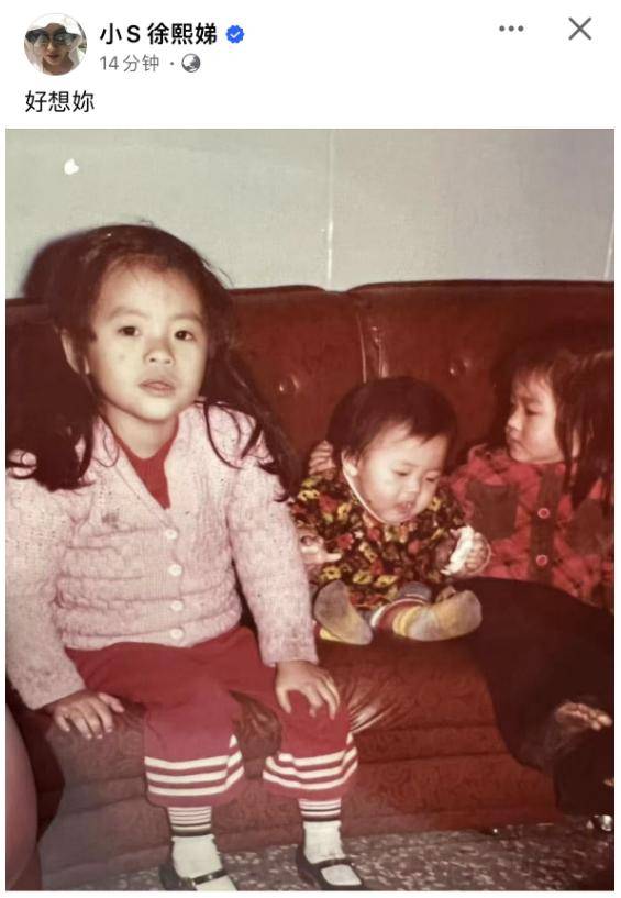 不知不觉,大S去世已经两周了,也到了她“二七”祭奠日,妹妹小S更新了动态,晒出姐妹三人小时候的合影悼念,她心碎喊道:“好想你”,3个字就惹不少网友泪目,心疼小S,也想念大S。