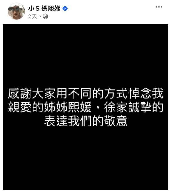 之前小S还发文感谢大家用不同的方式悼念她的姐姐熙媛,徐家诚挚的表达我们的敬意。