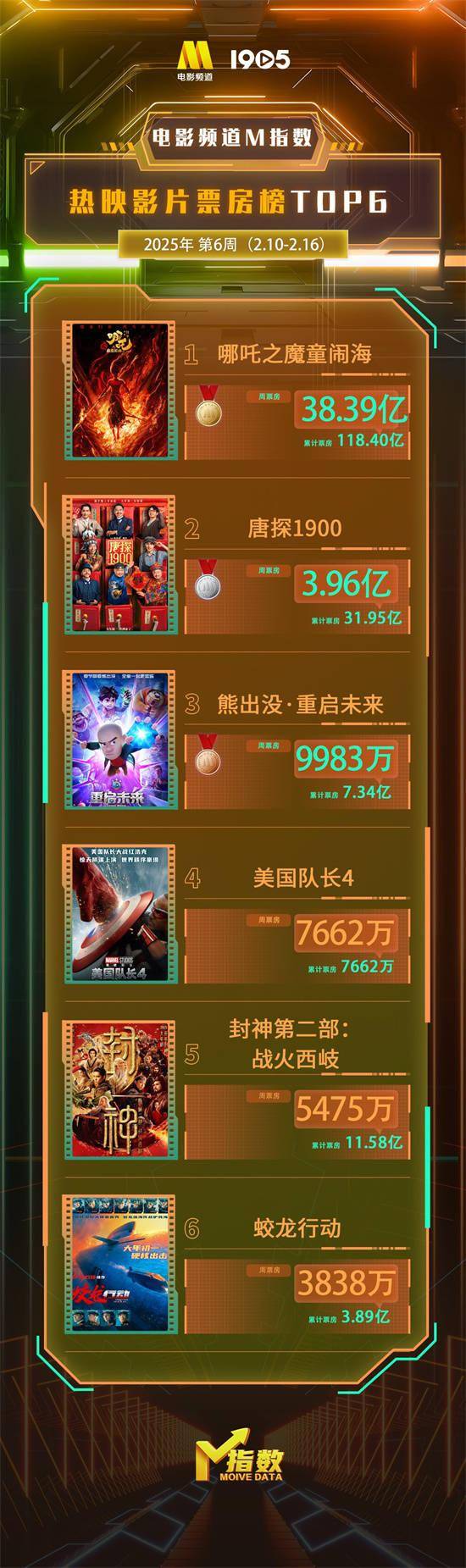 1905电影网讯 “电影频道M指数”2025年第6周结果发布。
