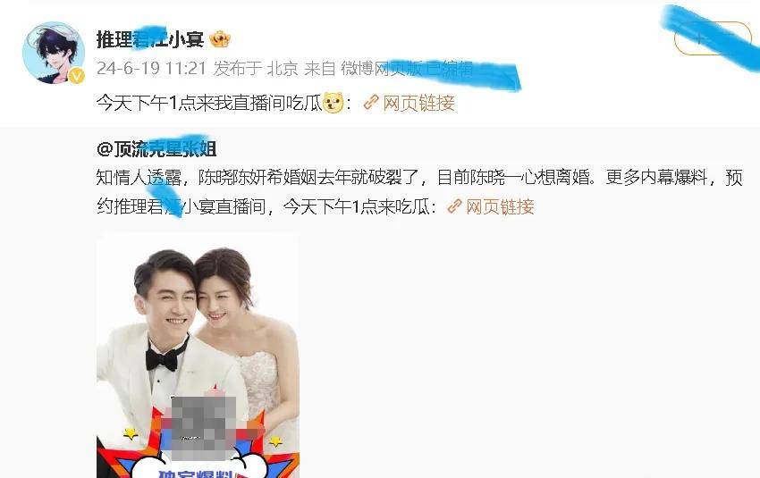 当时各种说法都有,有说陈晓单方面拉黑陈妍希,冷暴力对方;有说陈晓一心想离婚,想找旧爱复合,愿意净身出户……从那时开始,可能双方已经开始做一些舆论上的准备了。