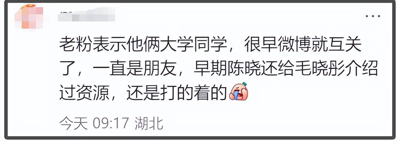 还有网友发现毛晓彤的前任男友陈翔,还是当年陈晓的婚礼伴郎。