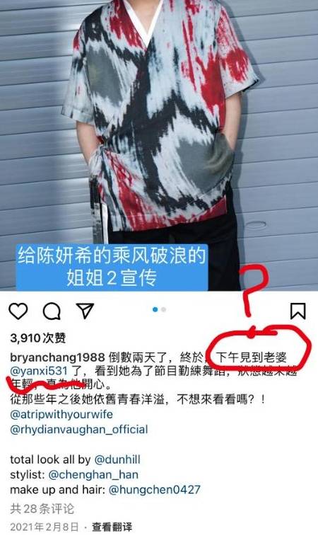 还有去《浪姐》探班,并艾特陈妍希,称呼她是老婆大人。