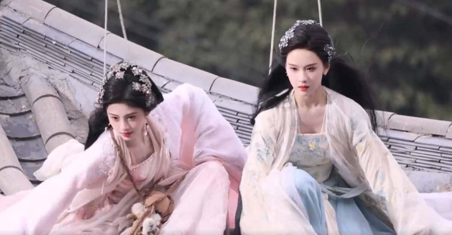 搜狐娱乐讯 2月19日,一段陈都灵和鞠婧祎在片场拍古装戏的路透释出。