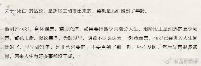 近日,胡歌在受访时关于“死亡”的一番言论,在网络上引起了广泛的讨论和关注。当他说出“40岁已经进入人生倒计时了”时,很多人都被他这份对生命的深刻认知所触动。