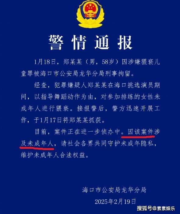 58岁的导演制作人郑冀峰被海口警方拘捕,理由是牵扯到多起猥亵女童的案件之中。