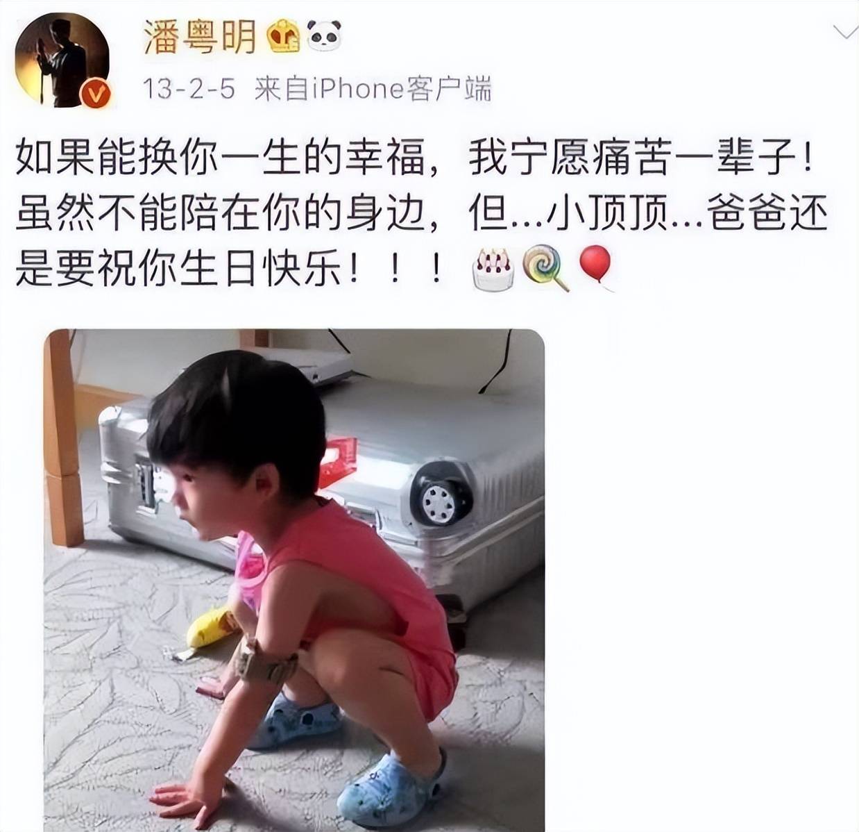 董洁对前夫潘粤明的态度,更是让顶顶在成长过程中缺失了父爱 。离婚 9 年,她想尽办法不让潘粤明见儿子,哪怕是孩子想见爸爸,她也会对顶顶说:“你爸爸很忙,忙到没空来看你。” 潘粤明只能通过微博,每年 2 月 5 日凌晨准时送上对儿子的思念和祝福,在文字中寄托着一位父亲对儿子的深深牵挂 。