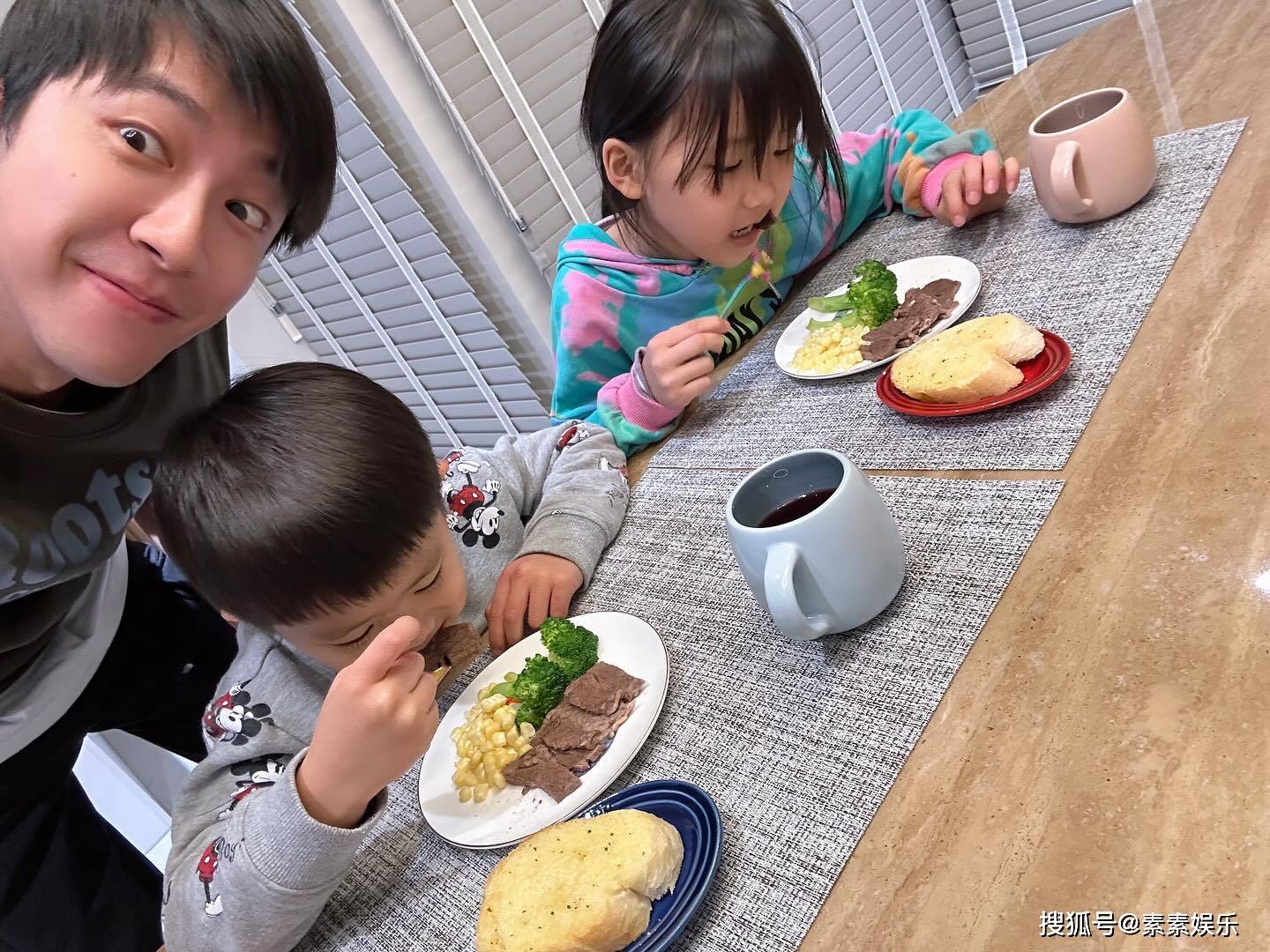 2月24日,江宏杰分享和孩子们一起吃早餐的温馨画面。
