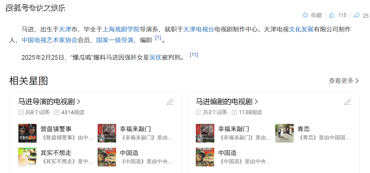 2月25日,娱乐圈再爆惊天大瓜!据八卦媒体懂瓜呱爆料,圈内某一线导演因强奸女演员入狱,而这位导演正是马进,受侵害的则是演员吴优。此消息一出,立刻在娱乐圈掀起了轩然大波,让人们对这位曾执导过多部热剧的导演刮目相看,不过这次是另类的“刮目相看”。