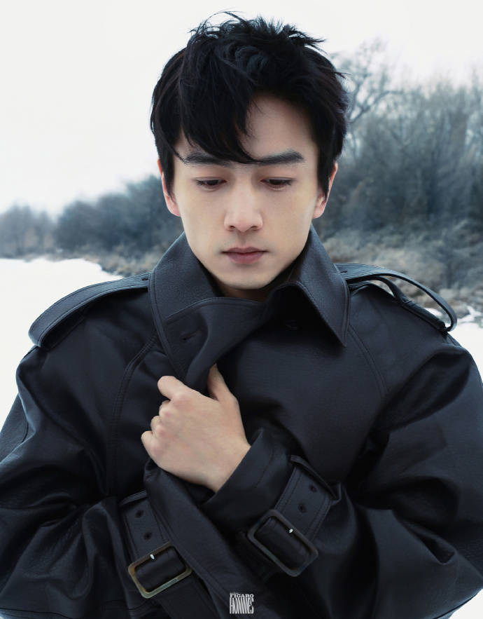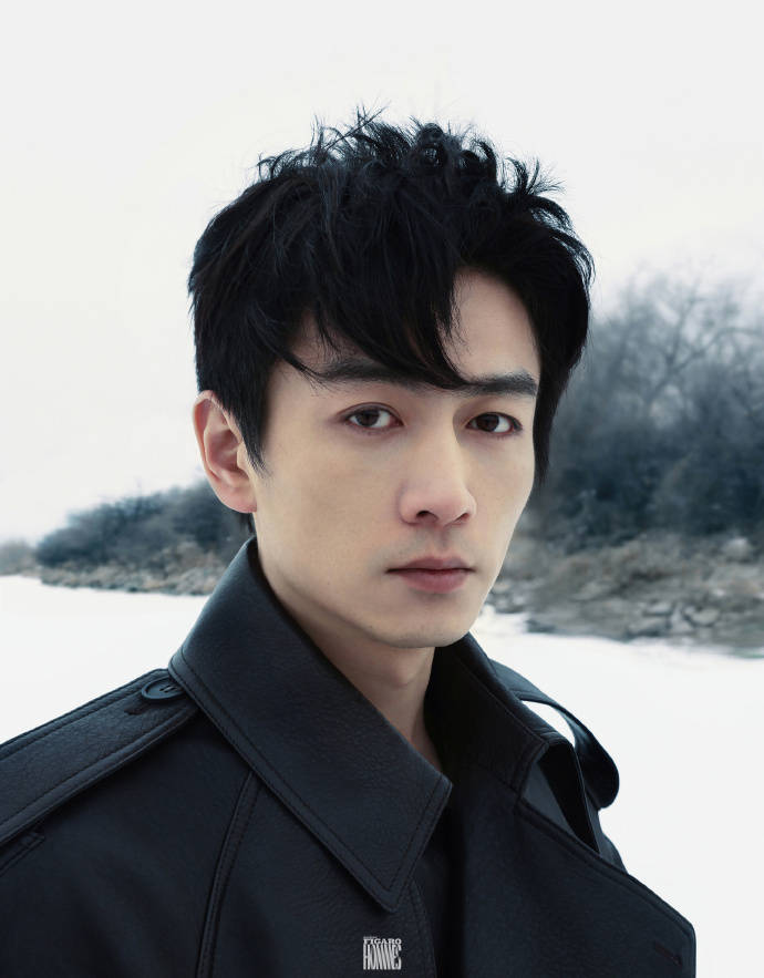 陈晓穿着黑色皮质外套质感十足,翻领与肩章的设计增添了几分硬朗与帅气,他的头发略带凌乱却不失层次感,自然地修饰着脸部轮廓,凸显出五官的立体,眼神坚定且直视镜头,目光中透露出一种沉稳与自信。陈晓脸部线条流畅,下颌角轮廓分明,展现出男性的硬朗与俊朗,他微微低头,流露出一种沉思、安静的氛围,仿佛沉浸在自己的世界中。