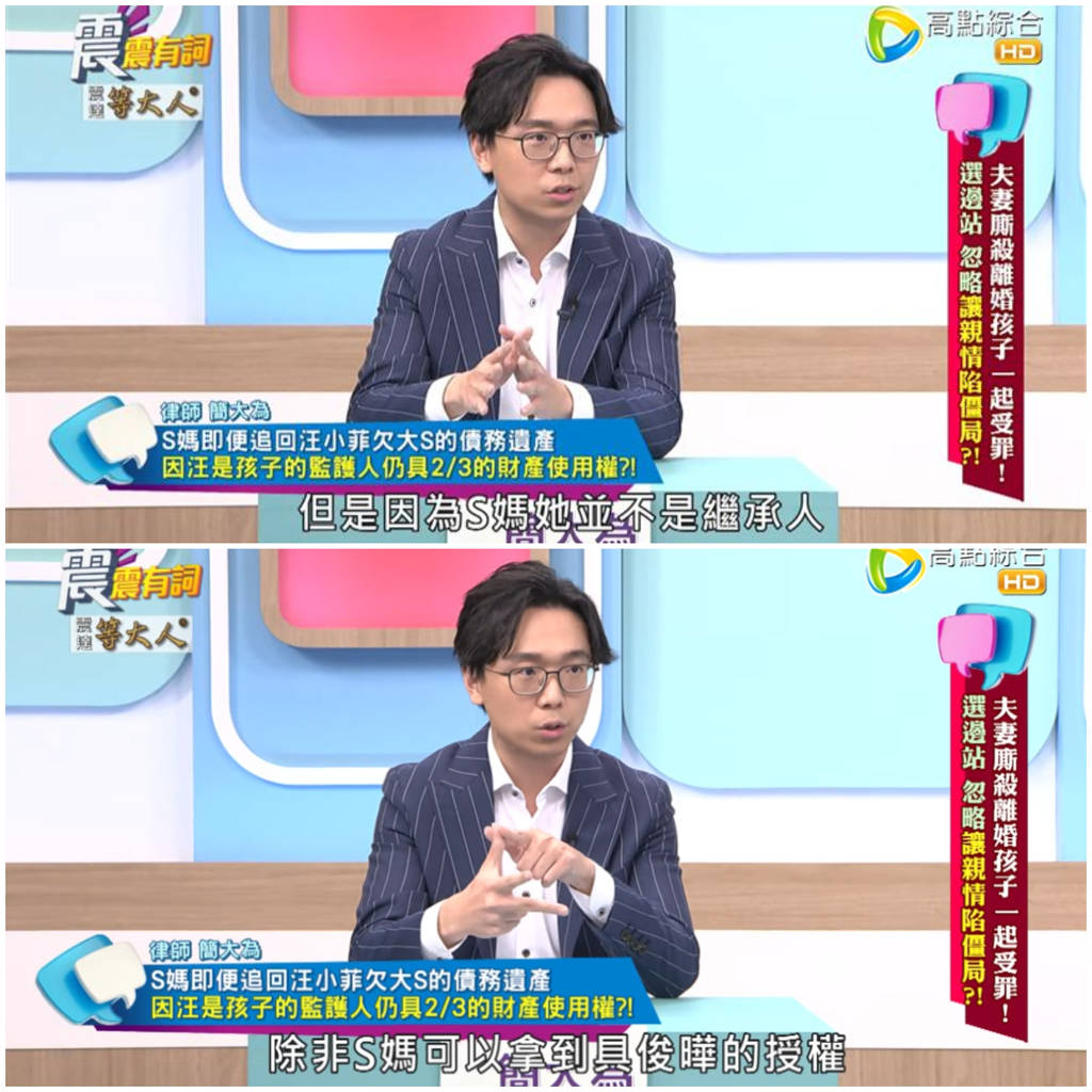 近日在台湾爆火节目《震震有词》中,台湾知名律师对徐汪两家的官司进行了分析,没想到一句话直接打脸S妈,说她想上战场,可是她连资格都没有。