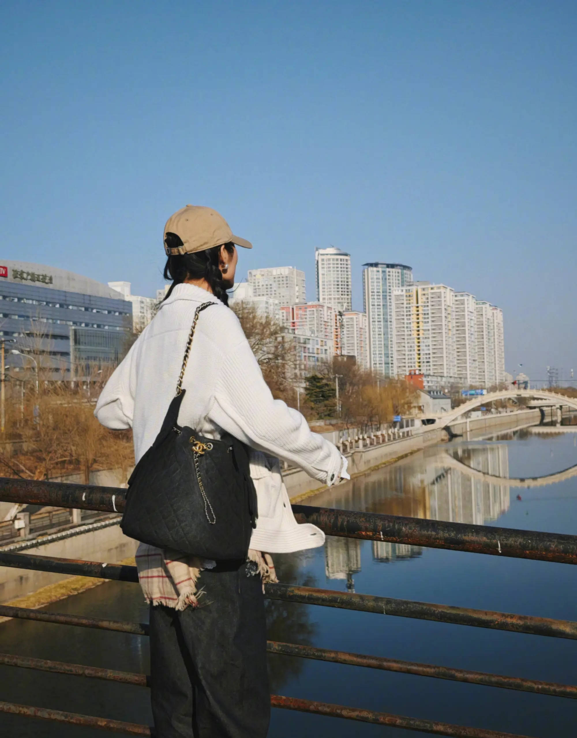 刘雯与高楼大厦同框合影。