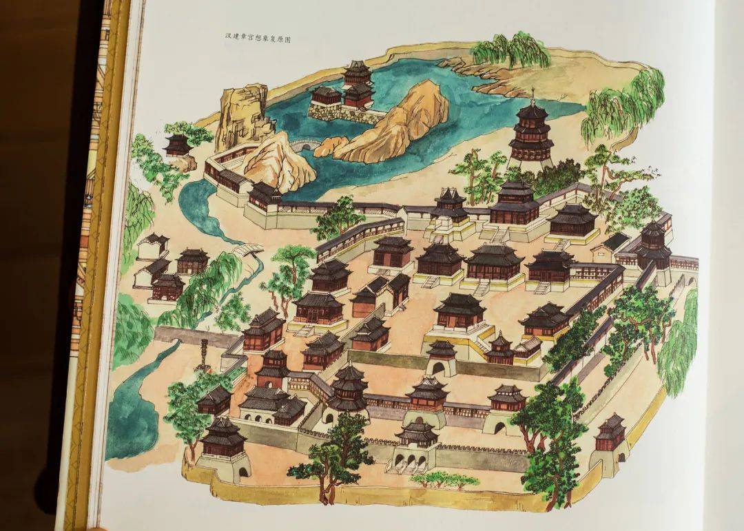书中 汉建章宫复原图、 唐大明宫麟德殿复原图、 宋真宗牌楼里面复原图……无不美轮美奂、鲜活灵动。