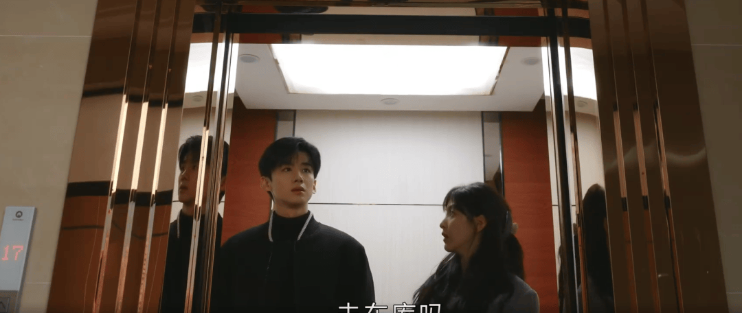 得知温以凡要跟回国的好朋友相聚,他跟温以凡一起等电梯下楼,在电梯里温以凡问他去车库吗?