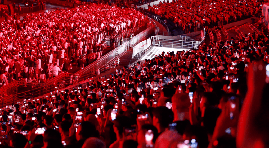 2月23日晚,“歌神”张学友连续第三晚在海口开唱。当观众席上的荧光棒拼出“1000”时,五源河体育馆顿时陷入一片全场狂欢的沸腾。