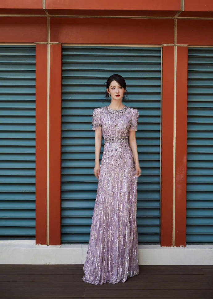 李沁紫色流苏长裙 李沁一身紫色流苏长裙现身,那模样简直美得不要太突出。紫色本就高贵神秘,再加上流苏的设计,随着她的步伐轻轻摇曳,灵动又优雅。 她就像从画中走出的仙子,气质超群。这样的李沁,真的让人眼前一亮,已经迫不及待期待她在盛典上更多精彩表现啦!