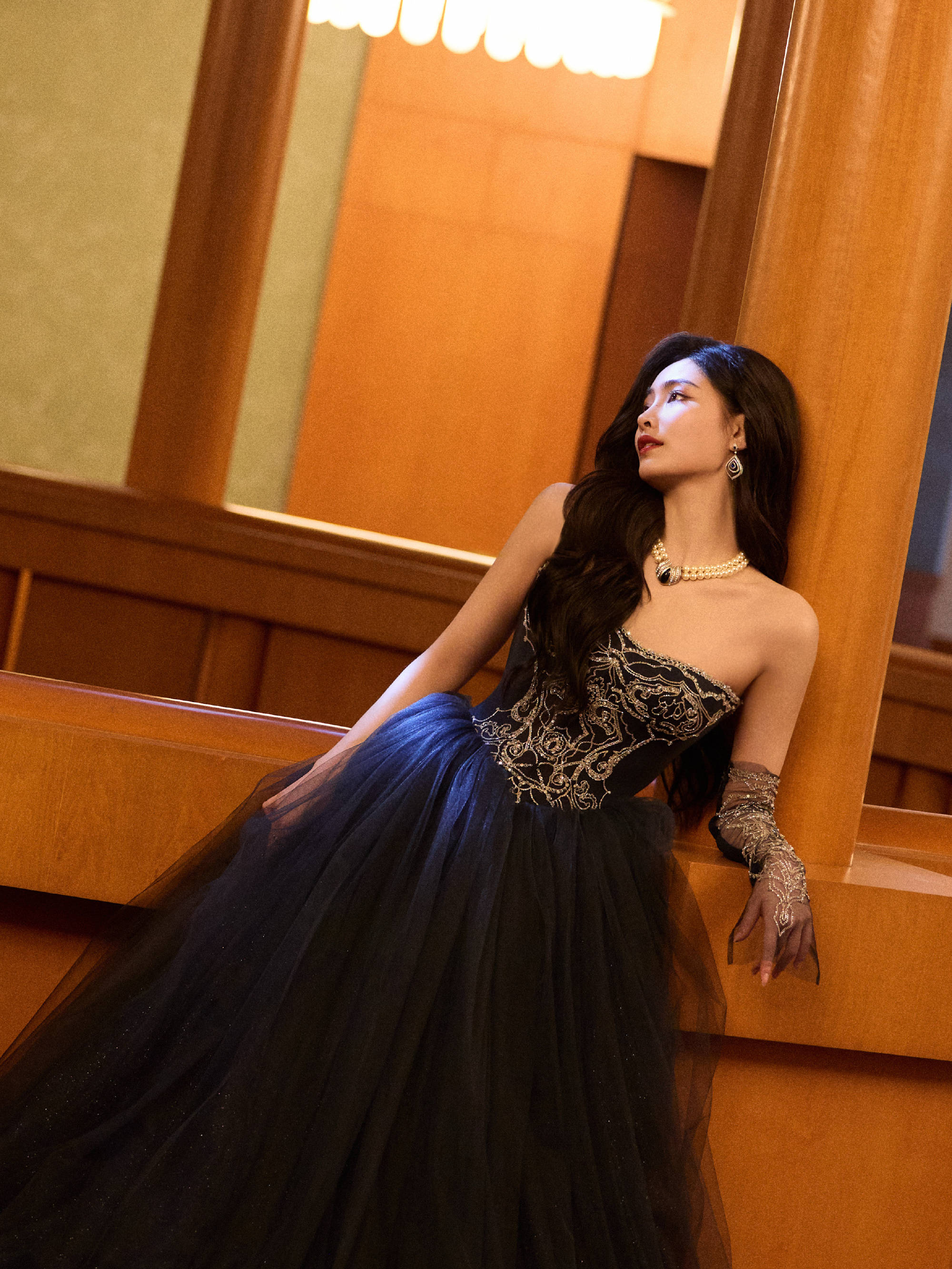 搜狐娱乐讯 2月28日,许佳琪穿抹胸纱裙出席活动,照片里的她黑发红唇,性感迷人,锁骨线条格外吸睛。