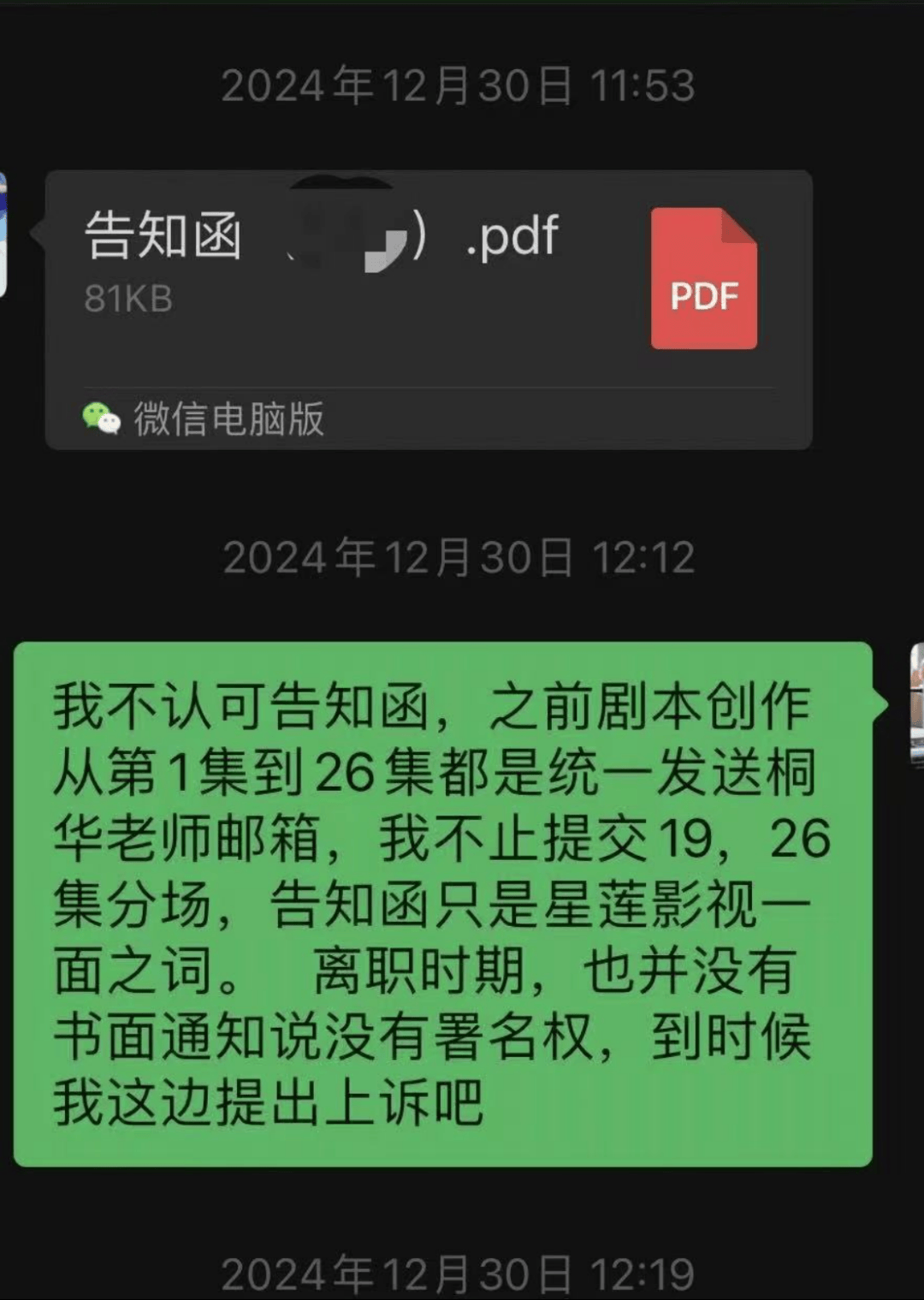25日,星莲影视发布声明,称当事人创作内容未达到编剧署名的要求,若有不同意见可以通过法律途径解决。