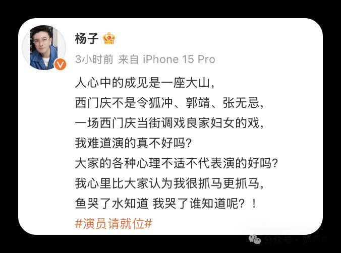 《演员请就位3》播出后,也发博说自己看到别人这么多抓马的评论,心里更抓马,但是引起这么大的反响,是不是说明自己演的很好?