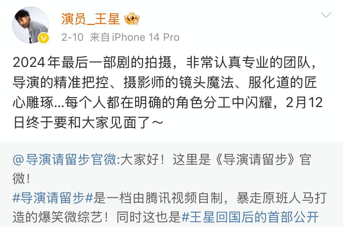 节目组特地发了条动态,说这是“王星回国后的首部公开作品”。