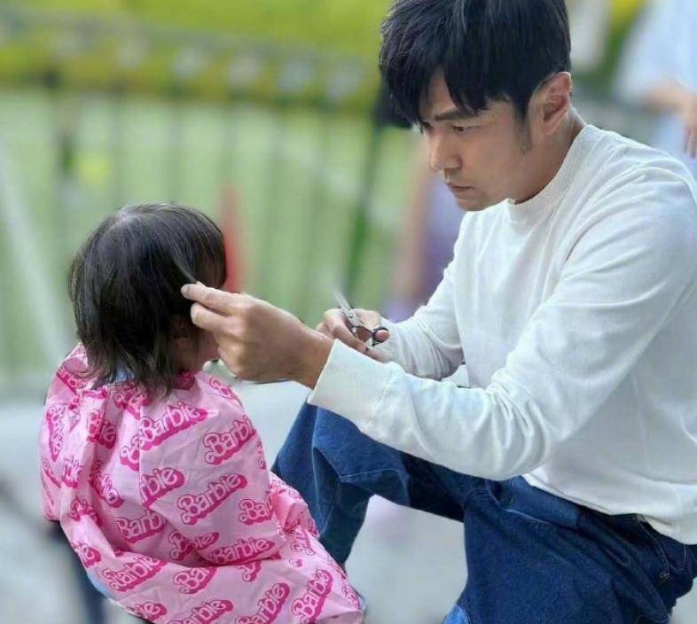 在这组照片中,还有一个特别暖心的画面。周杰伦在 “龙抬头” 这个传统的日子里,亲自为小女儿 Jacinda 剪头发。他与 Jacinda 对坐,手中的剪刀小心翼翼地移动着,眼神中满是温柔与宠溺。