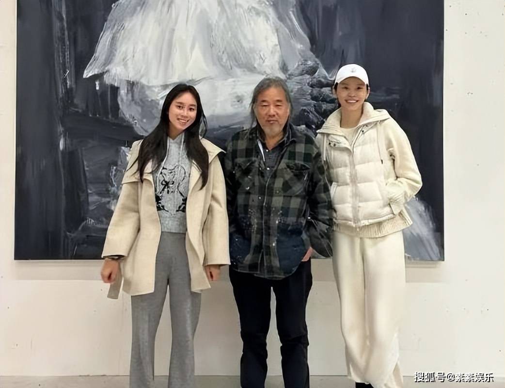 奚梦瑶和何超欣在某艺术馆与老师合影,感觉结婚之后的奚梦瑶越来越漂亮了。